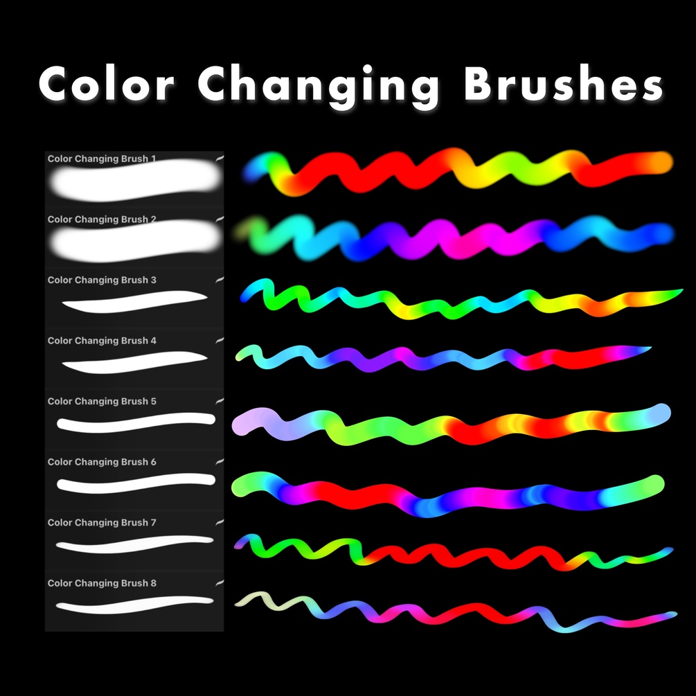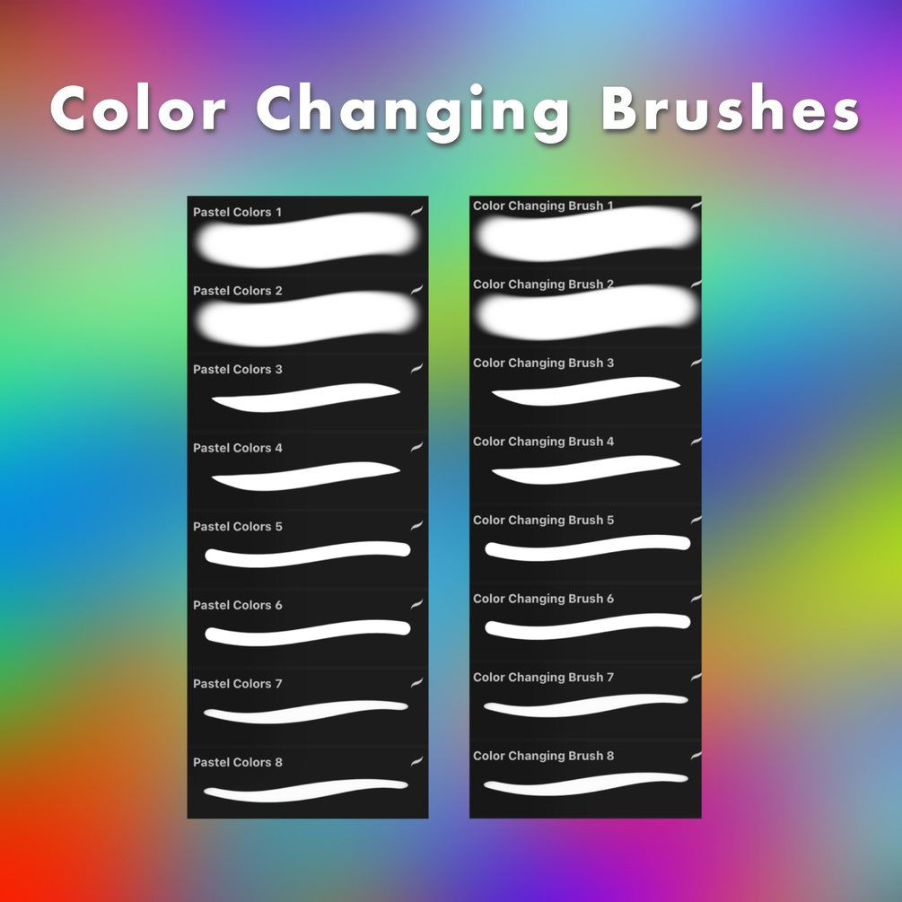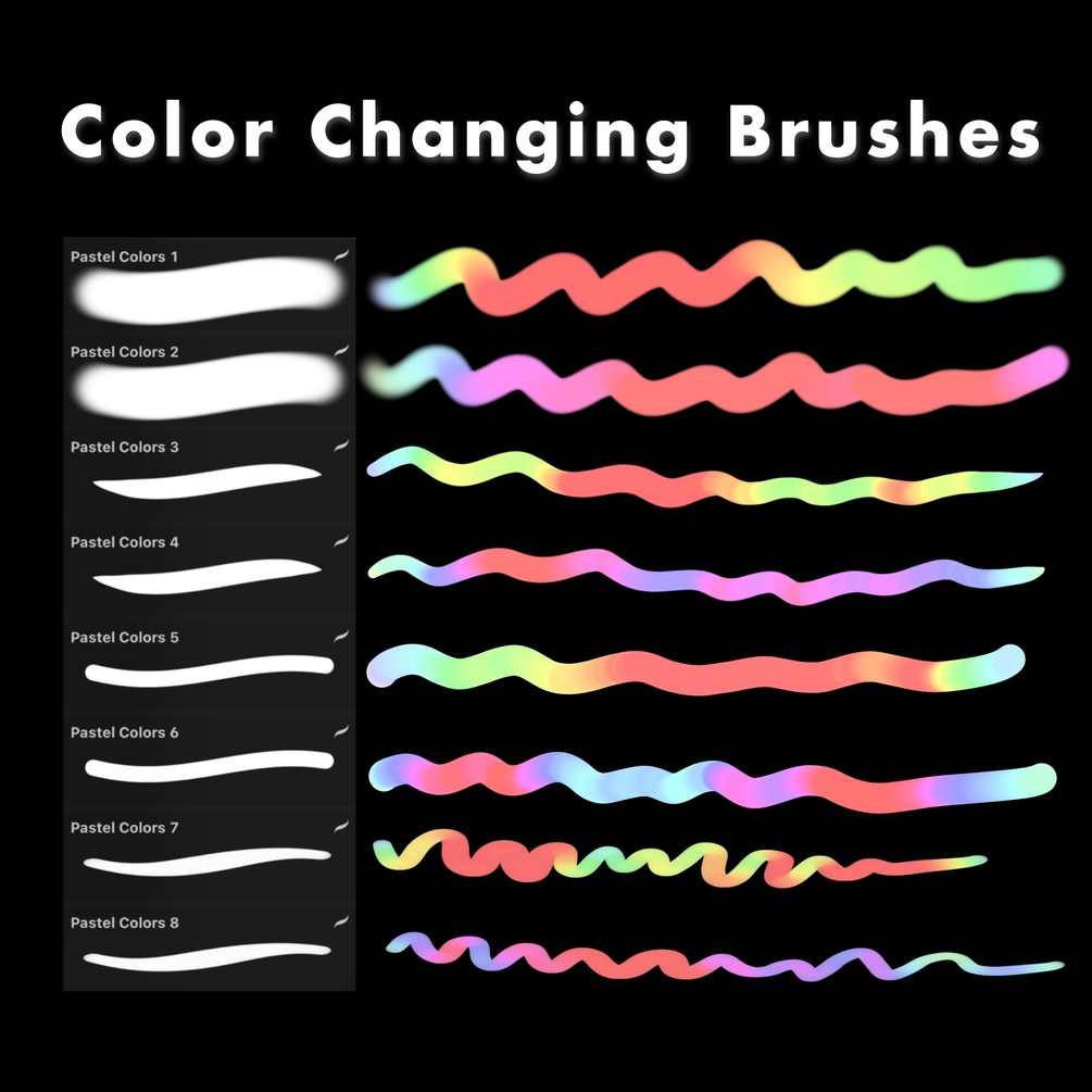 Color Changing Brushes for Procreate - set of 16 brushes (8 saturated brushes + 8 pastel brushes).
