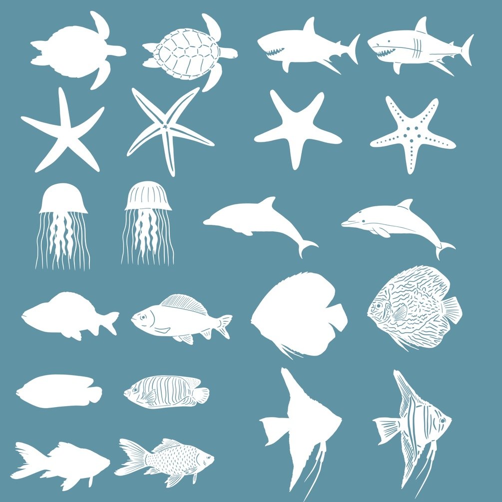 Ocean Creatures stamps will help you draw underwater illustrations.