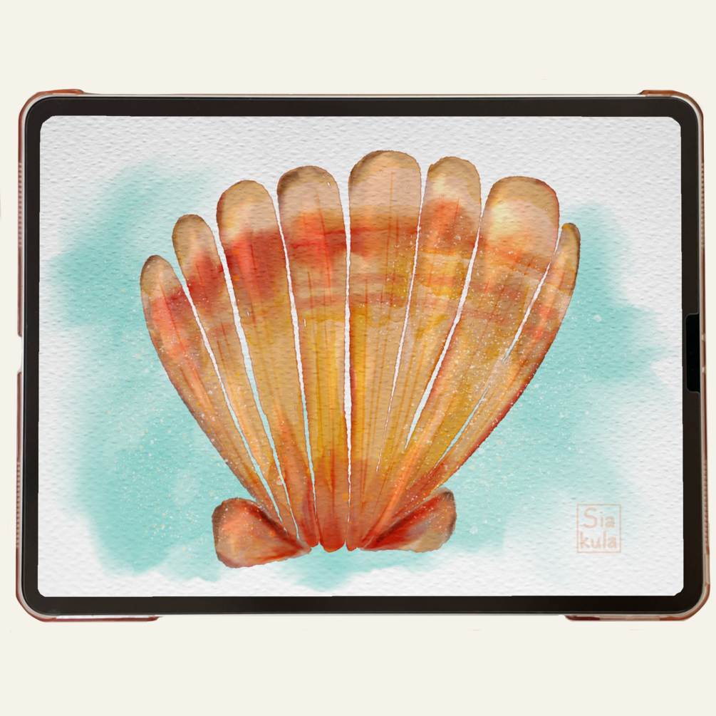 Seashell watercolor in Procreate tutorial