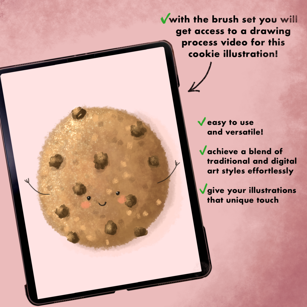 With this brush set you will get a link to a Drawing Process video where I show how I drew a cookie illustration.