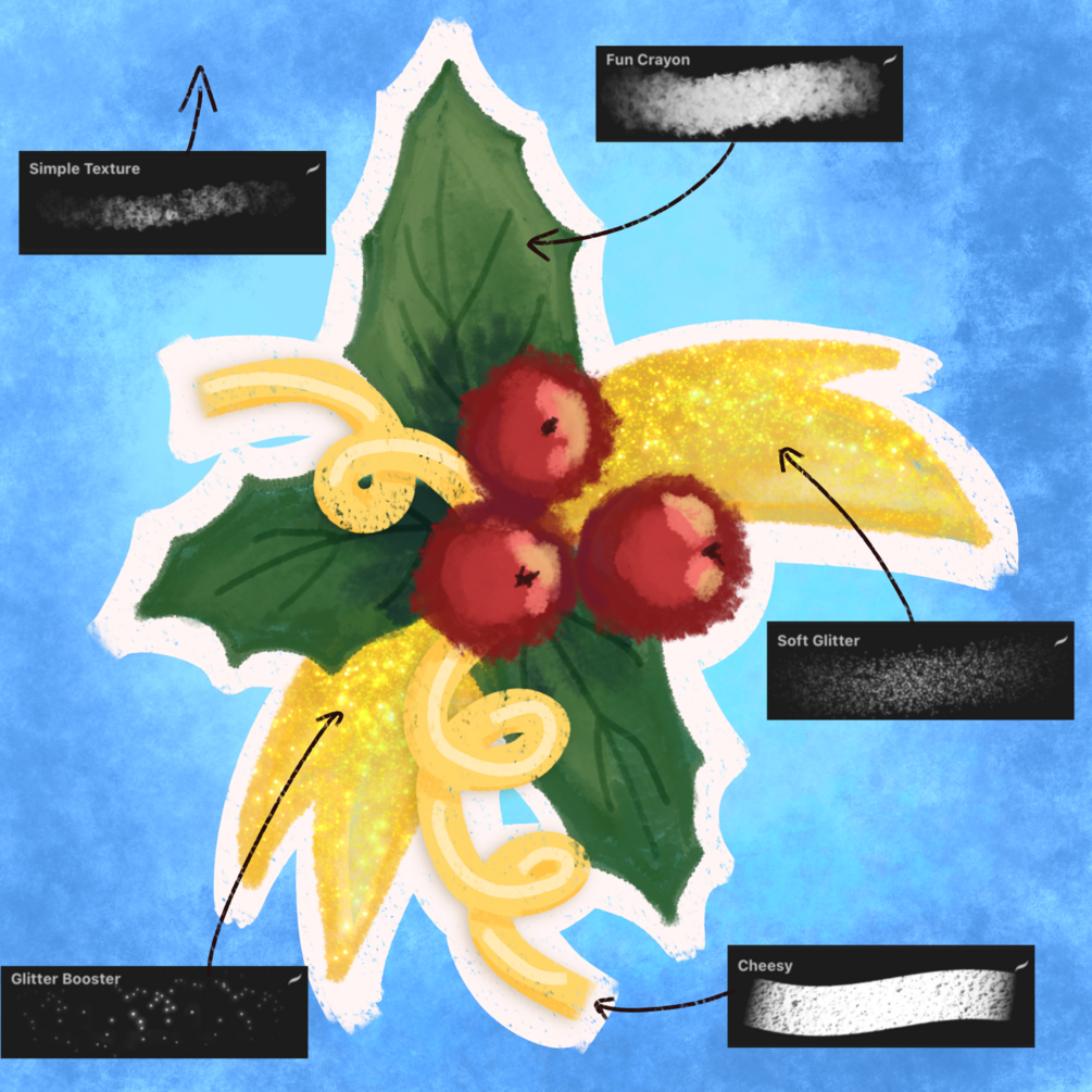 This Mini Procreate brush set includes 5 brushes that will allow you to create fun illustrationss on your iPad. With this brush set you can create illustrations that will look like a mix of digital art and traditional art.